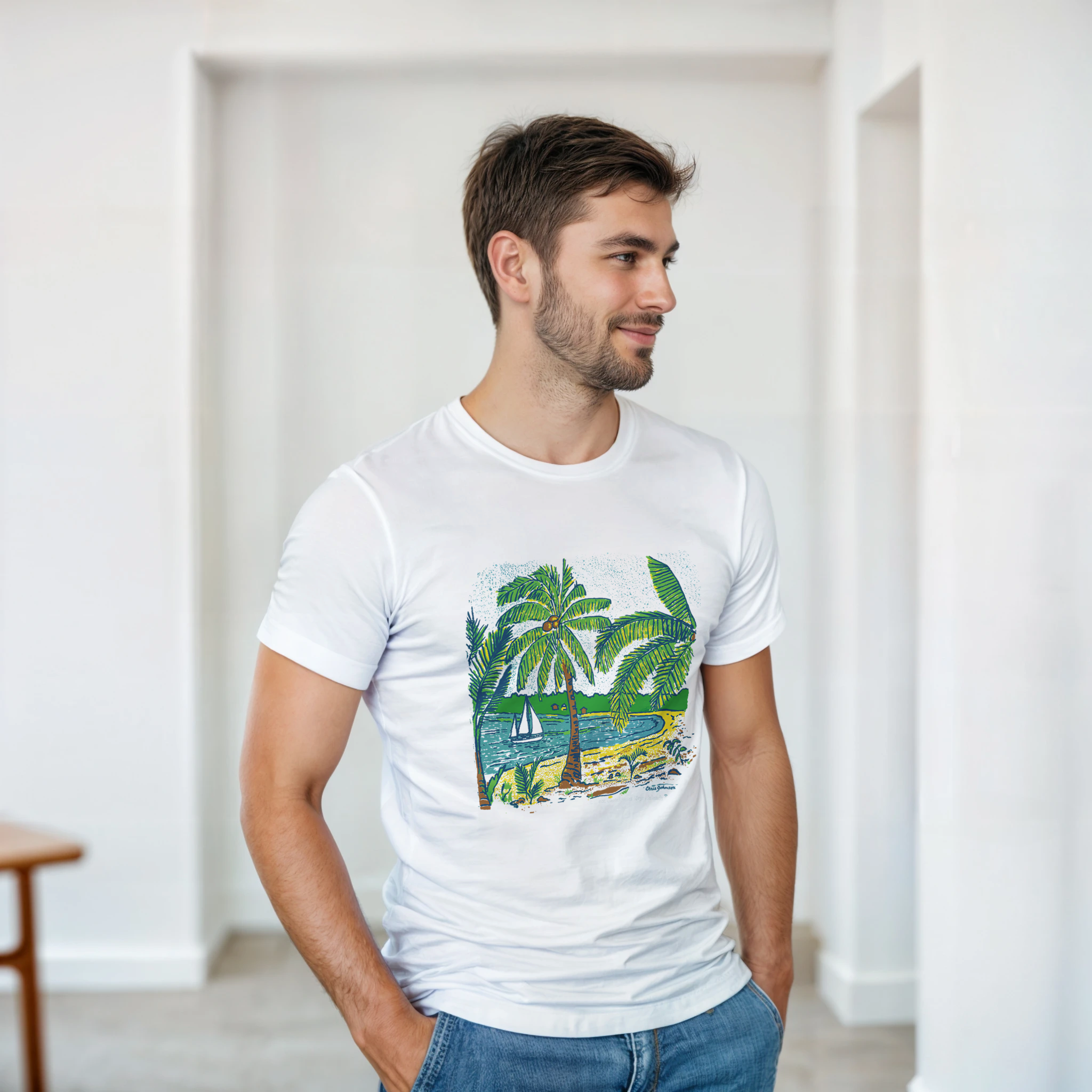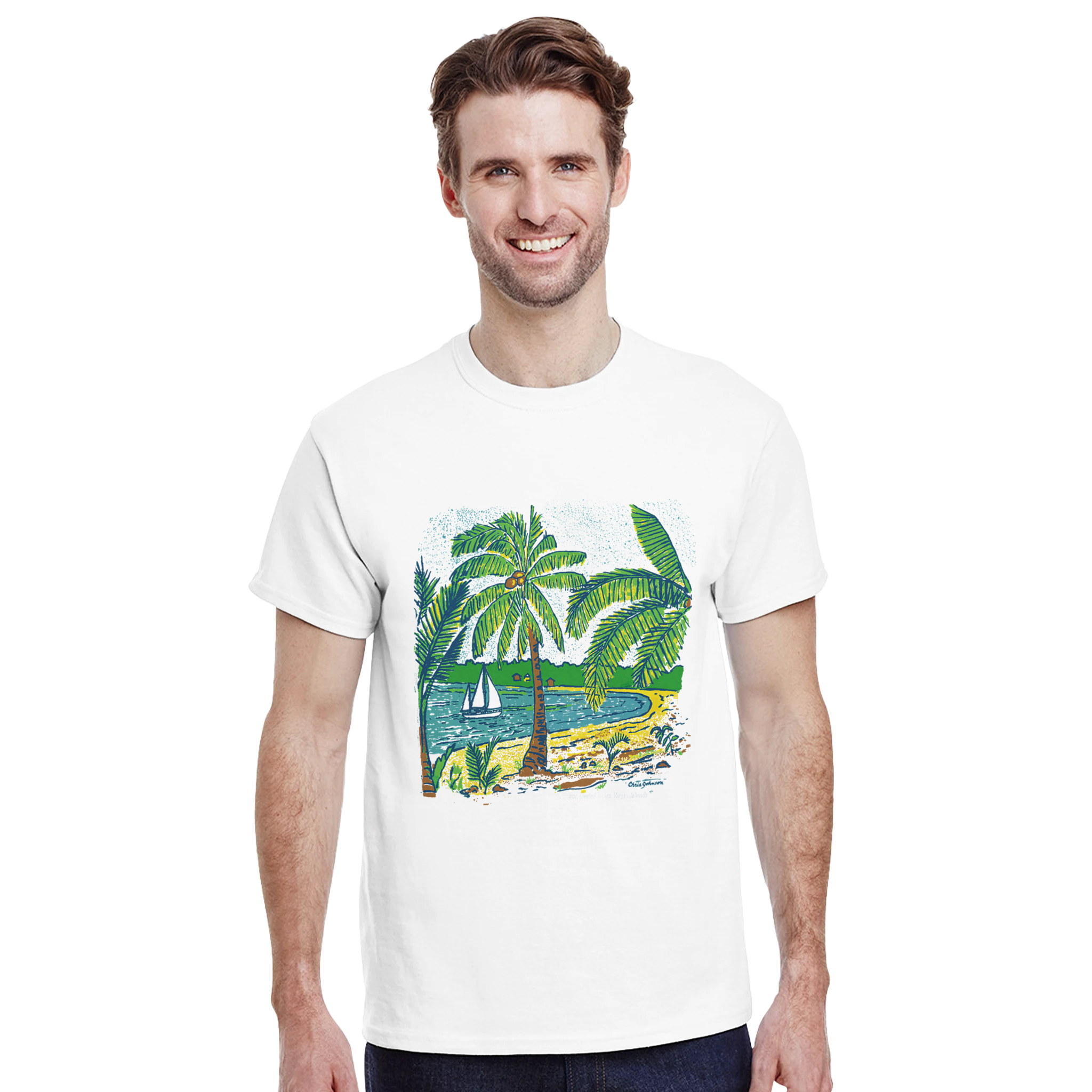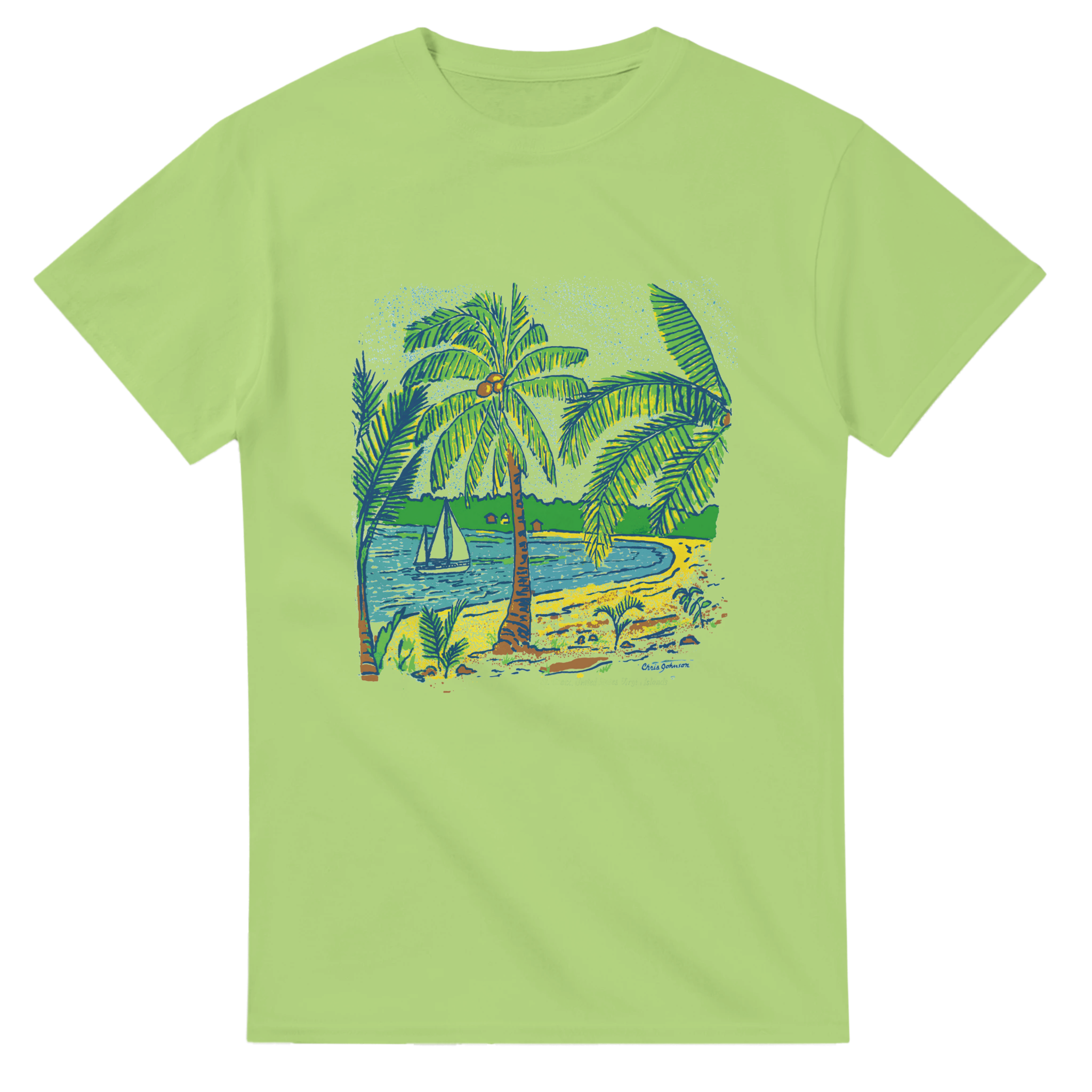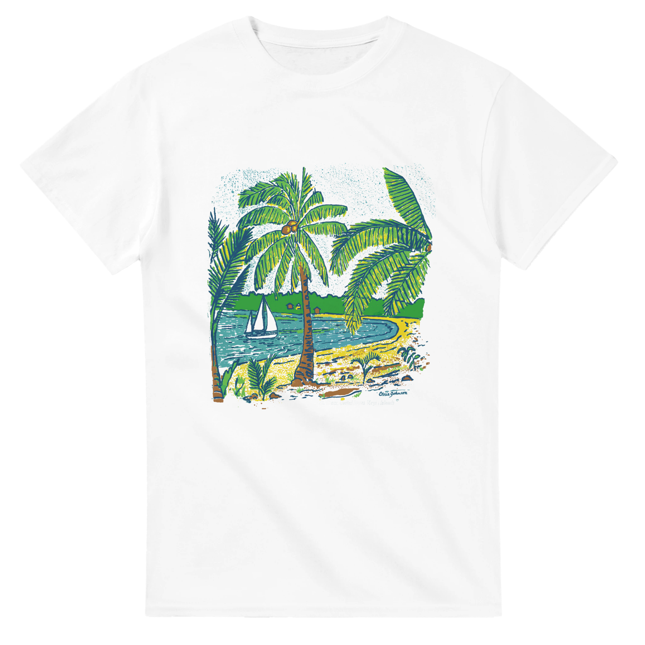 Palm Trees at the Beach – The heat of the day makes the welcomed shade of an island palm a cool place to watch the boats go by. This t-shirt design was inspired by the beautiful sandy beach spot that awaits the beach lover on the west end of the tiny tropical island of Culebra, Puerto Rico.
