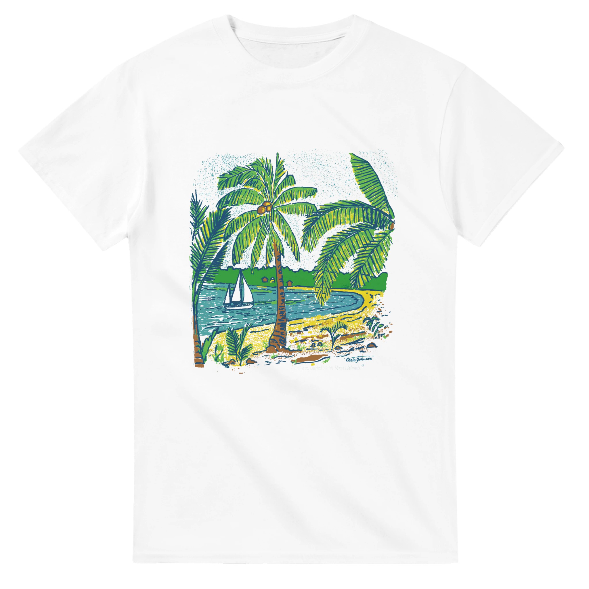 Palm Trees at the Beach – The heat of the day makes the welcomed shade of an island palm a cool place to watch the boats go by. This t-shirt design was inspired by the beautiful sandy beach spot that awaits the beach lover on the west end of the tiny tropical island of Culebra, Puerto Rico.